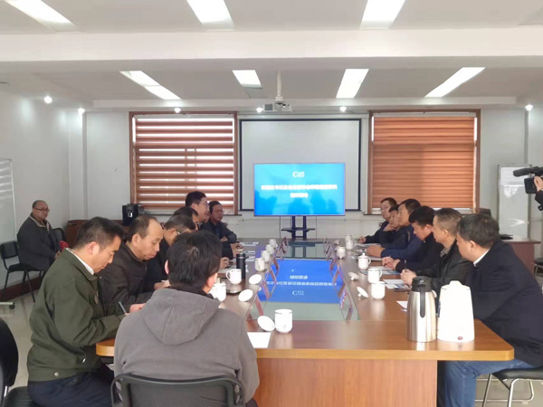 參觀完生產(chǎn)車間,總經(jīng)理張昌有、副總經(jīng)理唐建科及各位領(lǐng)導在會議室座談。