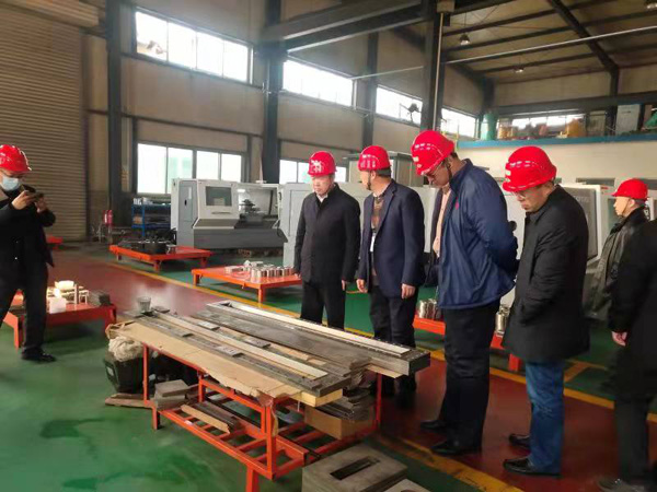 壹泰科總經(jīng)理張昌有帶領(lǐng)各位領(lǐng)導參觀考察生產(chǎn)車間,向各位領(lǐng)導介紹公司產(chǎn)品設(shè)備等生產(chǎn)技術(shù)。