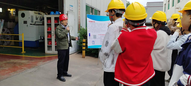 唐總為高校師生介紹了電子加速器構(gòu)造,及輻照原理,帶領(lǐng)師生參觀車間,詳細(xì)介紹了產(chǎn)品的生產(chǎn)工藝和流程。在車間,師生們見到了電子加速器的真實面貌,了解了線纜輻照的實際過程,觀看了電子加速器運行下的輻照室內(nèi)電子束樣貌視頻。學(xué)生們通過與現(xiàn)場工程師的交流,了解了崗位實際工作內(nèi)容,對所學(xué)專業(yè)的實際應(yīng)用有了更清晰的認(rèn)識。
